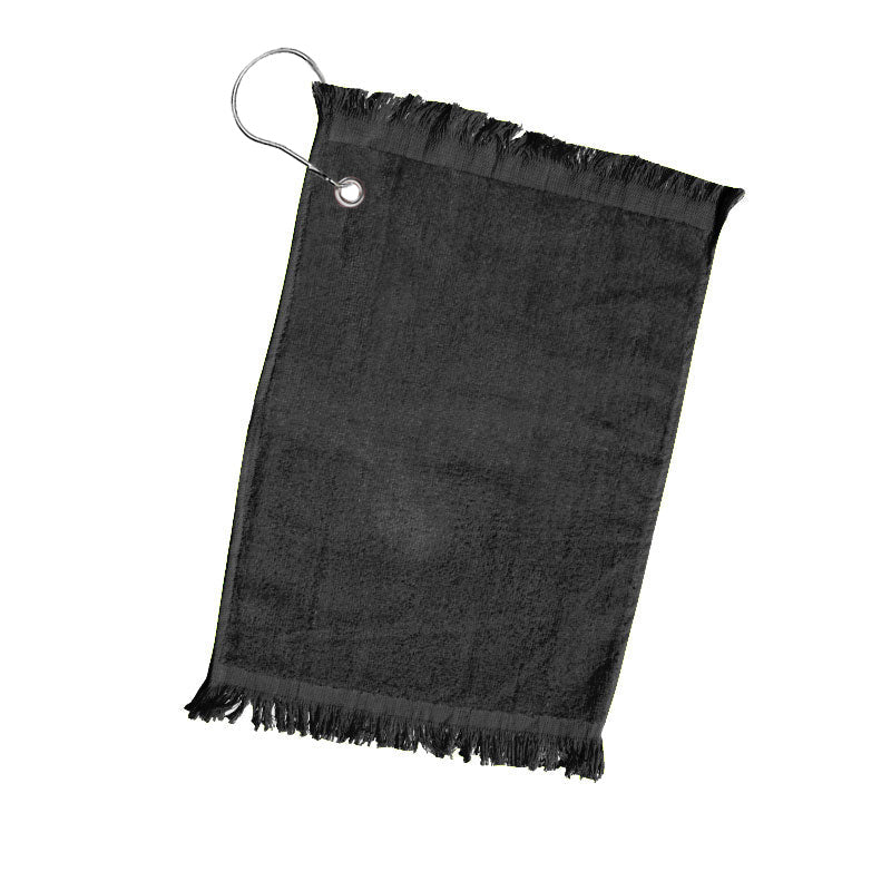 QTs Fringed Fingertip Towel with Corner Grommet (Black)
