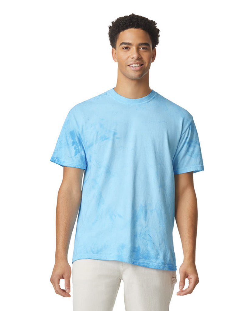 Garment-dyed soft ring spun color blast fabric tee with 100% cotton threads. Relaxed fit with topstitched, classic width rib collar.
