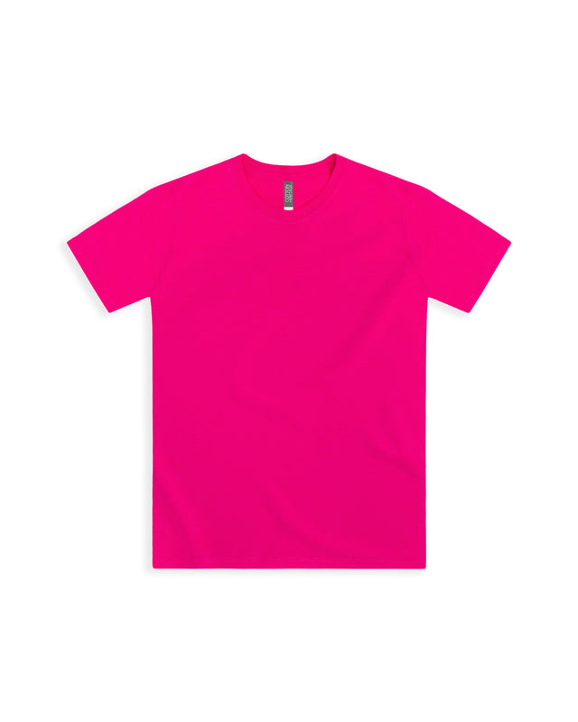Unisex, ultra soft hand, side-seamed, tightly knit, superior printability.