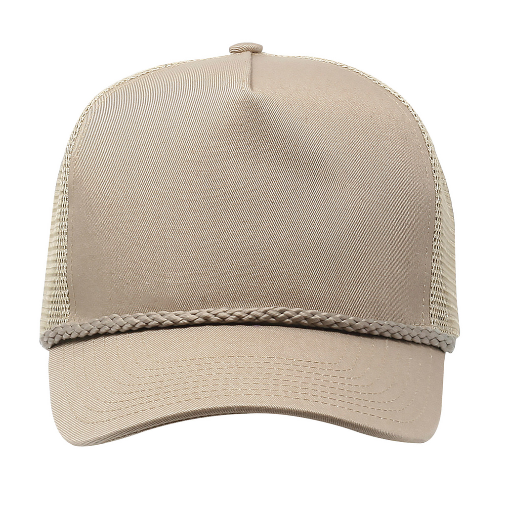Cobra Cap C256M C256M 5 panel Cotton Twill Front, Mesh Back, 7 mm Rope cap - Upgraded TSM (Khaki)