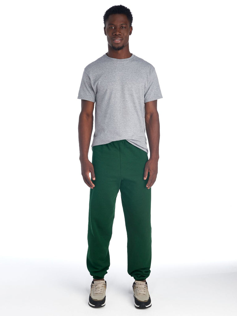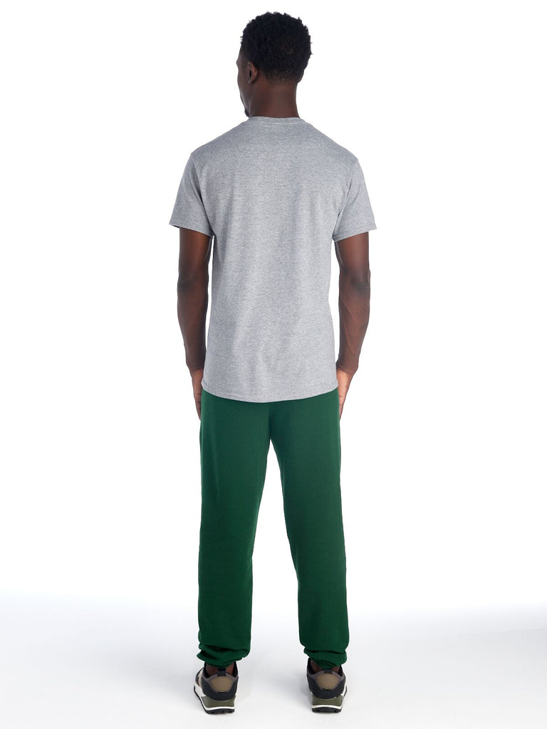 NuBlend® pill-resistant fleece. Tear-away label. Elastic bottom leg openings with two-needle coverstitching. Companion to style 973BR.