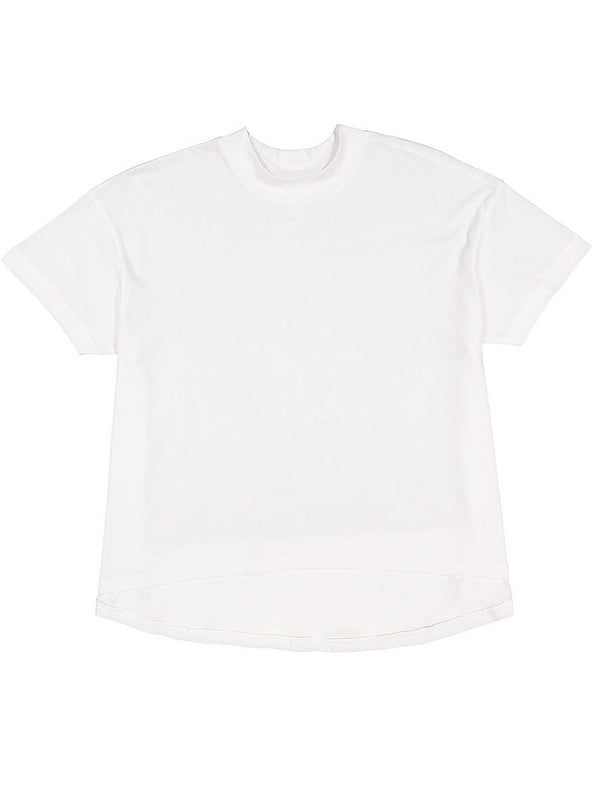 Features: Fashion ribbed collar • Self-fabric back neck tape • Drop shoulder construction • Hi-lo bottom hem • Blind stitch on sleeves and bottom hem • EasyTear™ label