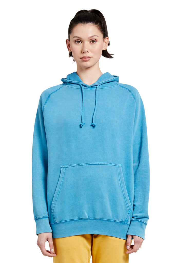 This unisex hoodie with raglan sleeves is mineral washed to look and feel just like your favorite vintage sweatshirt. Made from 100% combed ringspun cotton, the fabric is substantial but washed down and exceptionally soft. Broken in for a lifetime of comfort and wear in seven vintage colors.
