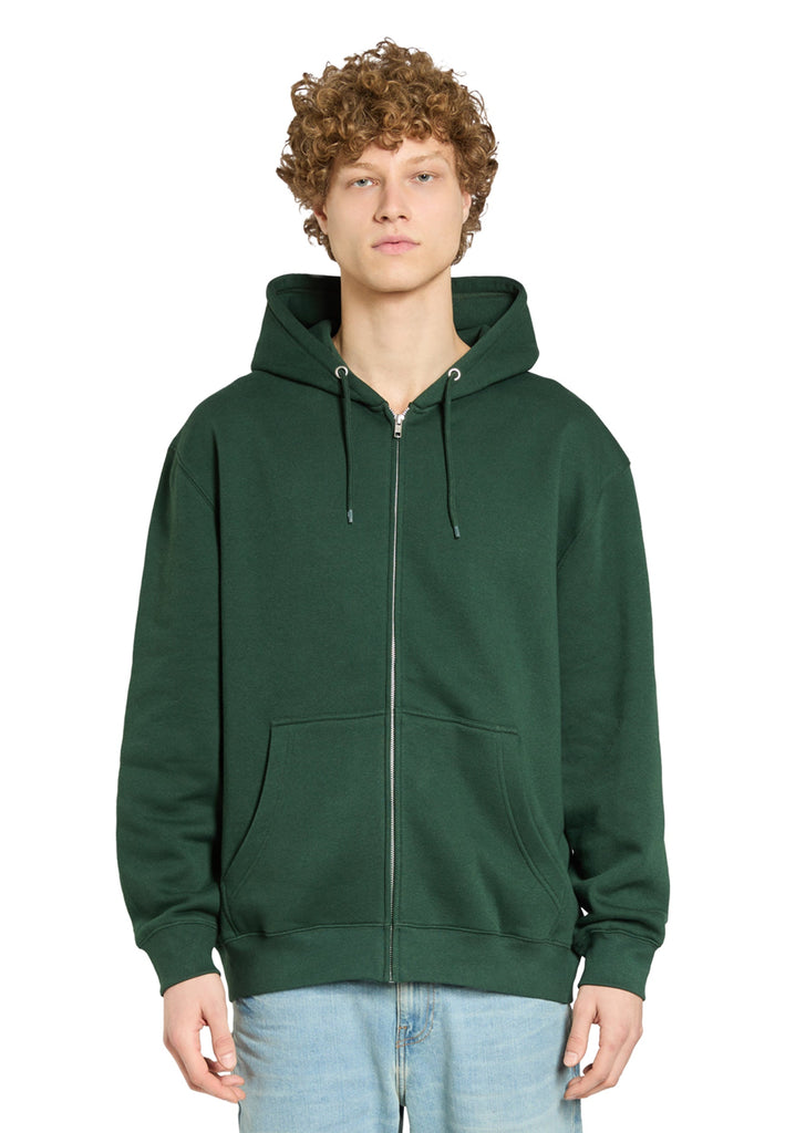 Side-seamed. YKK #5 zipper and DA8 auto-lock slider. 100% cotton face. Double-needle topstitch on all seams. Three panel hood with fleece lining for extra comfort. Matching round drawcord with tipped ends and metal eyelets. Kangaroo pockets. Ribbed cuffs and waistband. Twill neck tape. Tear away tags. Under 5% shrinkage.