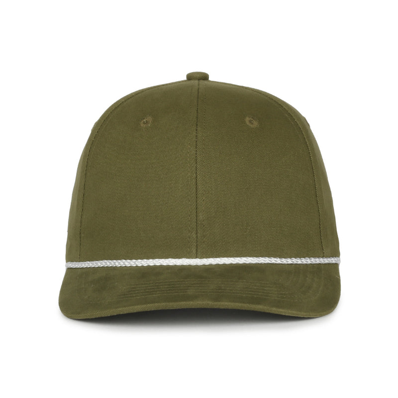 This mid crown structured cap is a brushed cotton twill in a trend forward shape and colors with a white rope across the slight pre curved visor. The premium material and colors meet the demands and needs from many industries.