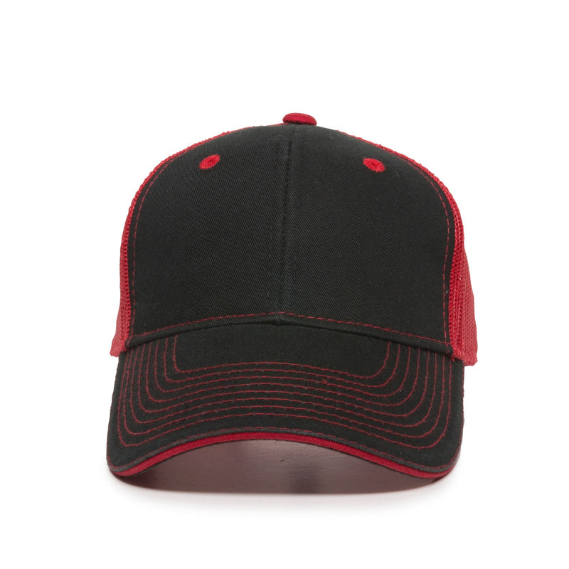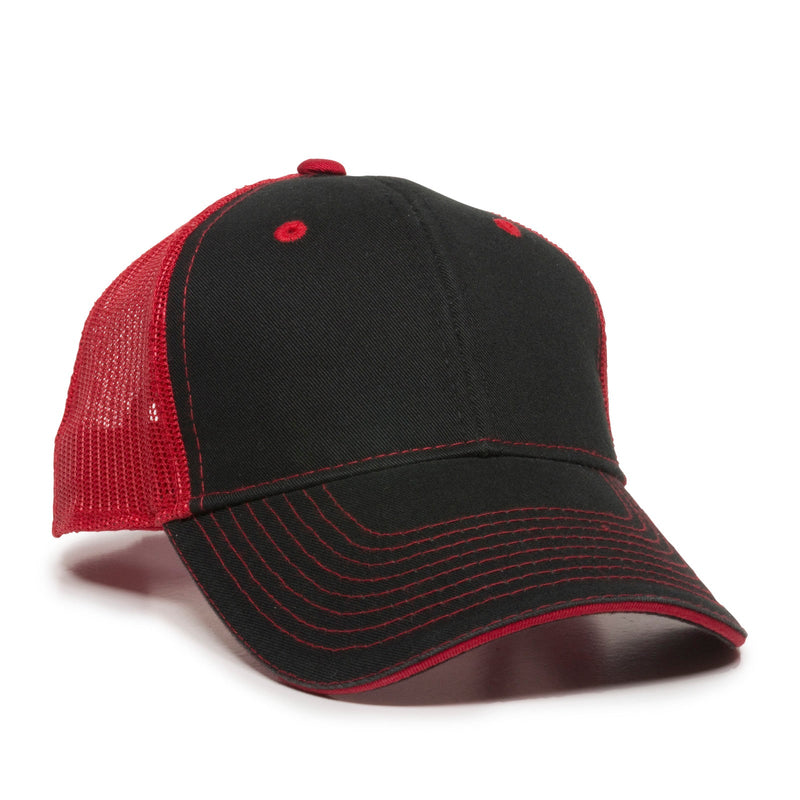 Outdoor Cap GWT-101M Garment Washed Trucker Hat (Black/Red)