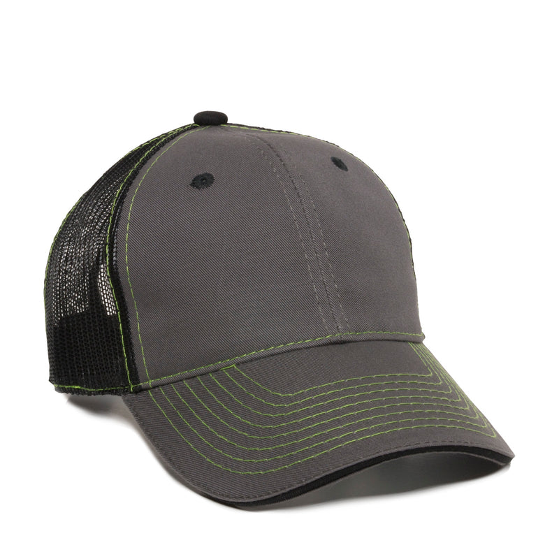 Outdoor Cap GWT-101M Garment Washed Trucker Hat (Charcoal/Black)