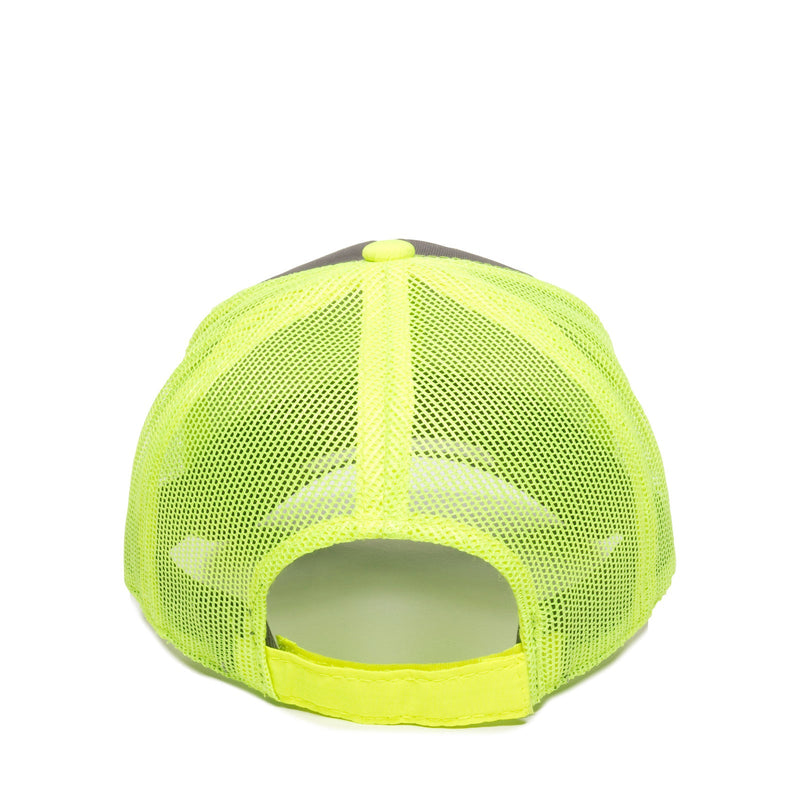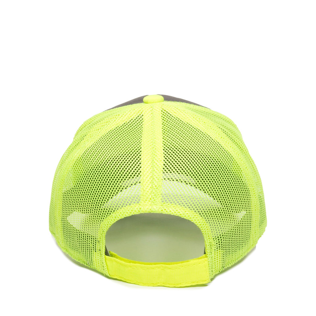 Outdoor Cap GWT-101M Garment Washed Trucker Hat (Charcoal/Neon Yellow)