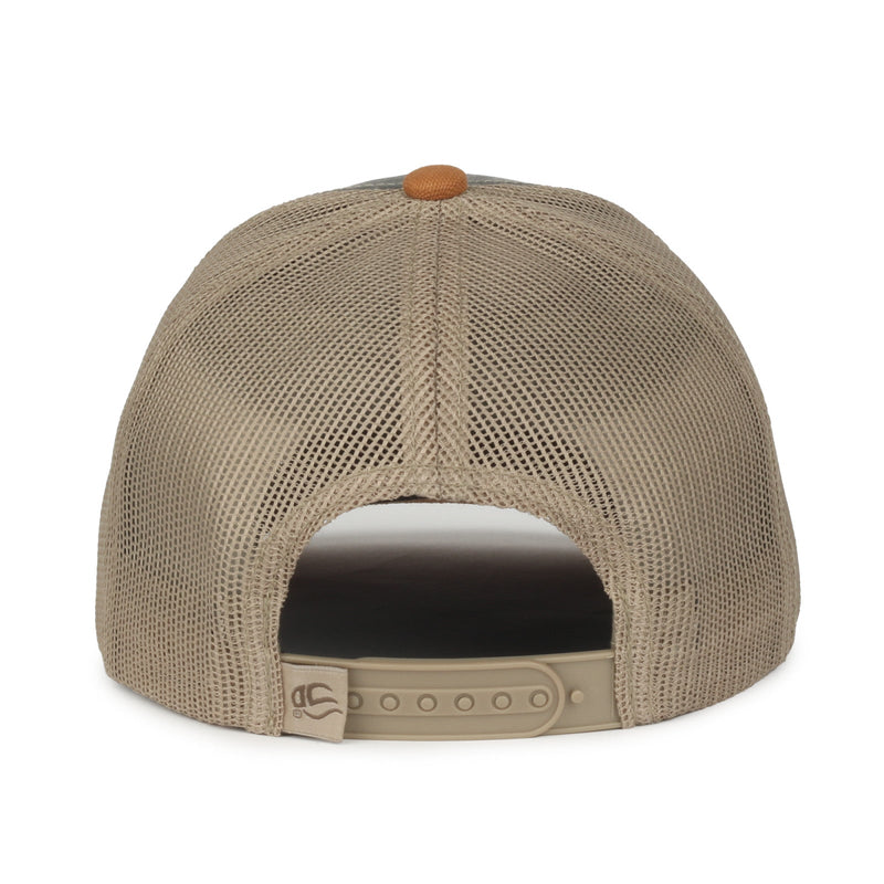 The HPD-615M is our Premium Rugged Trucker Cap that is designed with the traditional six panels including mesh back panels. This modern trucker hat has a rugged low-profile look and is made with hard pigment dyed front panels. This cap comes in 3 different colorways that all have the same DUK color block pattern on the visor to complement the primary front panel colors.