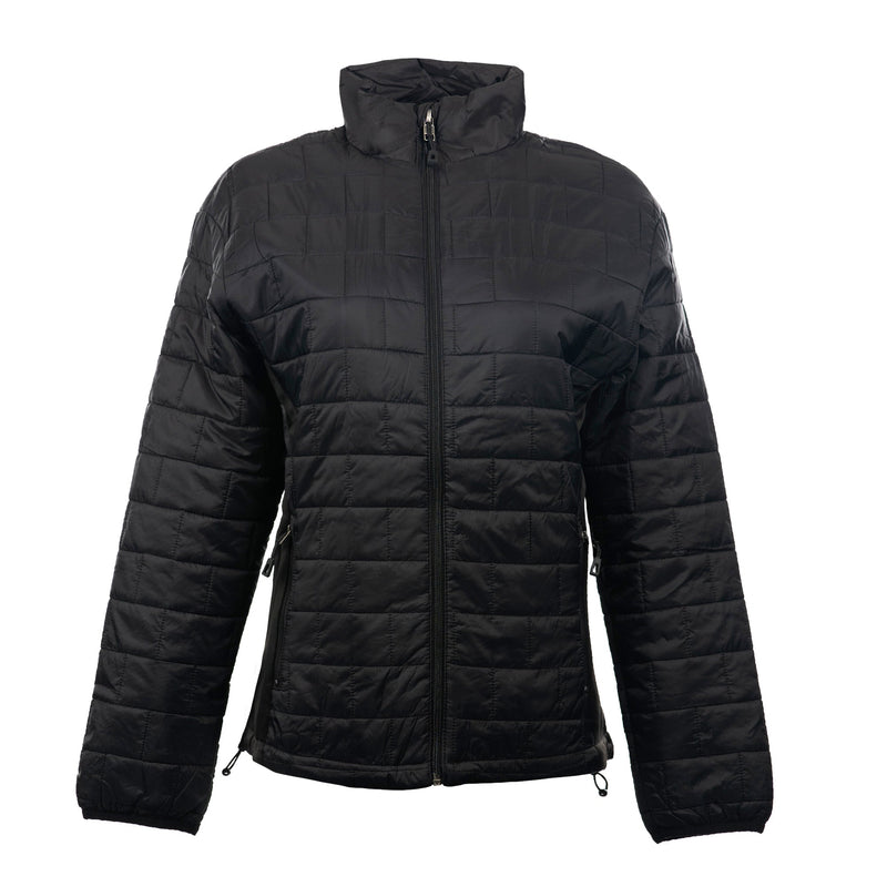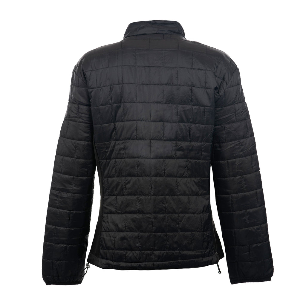 100% nylon mini brick quilted puffer vestConvertible collar with zipper coverSide zipper pullsZipper cover at chinZipper cover on pocketsInside zippered chest pocketBinding on cuffStretch fleece insert added for flexibilitySizes: S-3XL