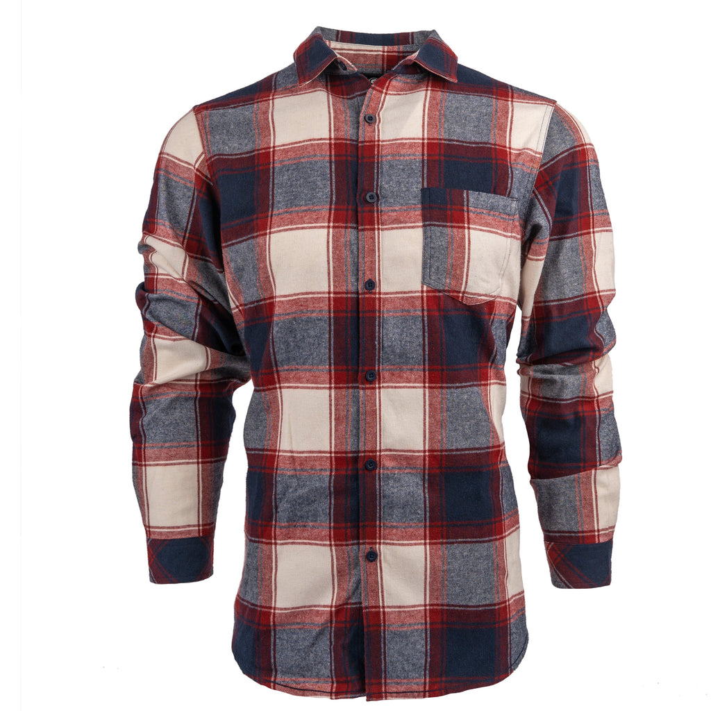 Cotton/polyester plaid flannel shirt1 chest pocket on biasHemmed bottomButton cuffsExtra soft materialSizes: S-3XL