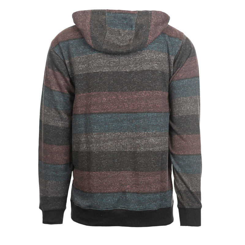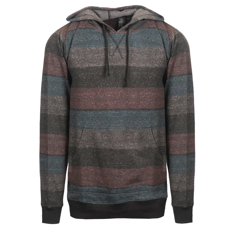 8.2 oz. striped pullover hoodieStitched v-neck detailingBlack drawstringElastic rib cuffs & hemFront pouch pocketModern fitStriped:55/45 Cotton/PolyesterZippered stash pocketBlack:100% 8.5 oz. CottonSizes: S-3XL