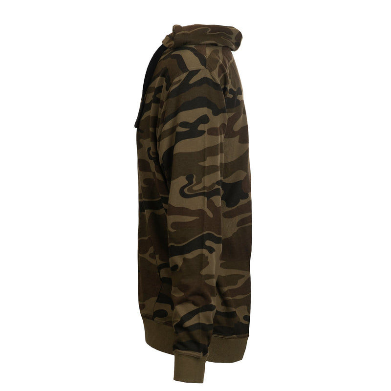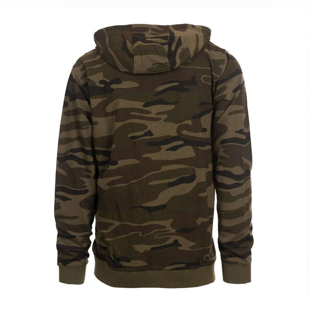 6.8 oz. french terry hoodie100% cotton for most colors(black camo/black is a 70/30 cotton/polyester blend)Enzyme washed Front pouch pocketsRib bottom & cuffsBlack drawstringNylon zipperSizes: S-3XL