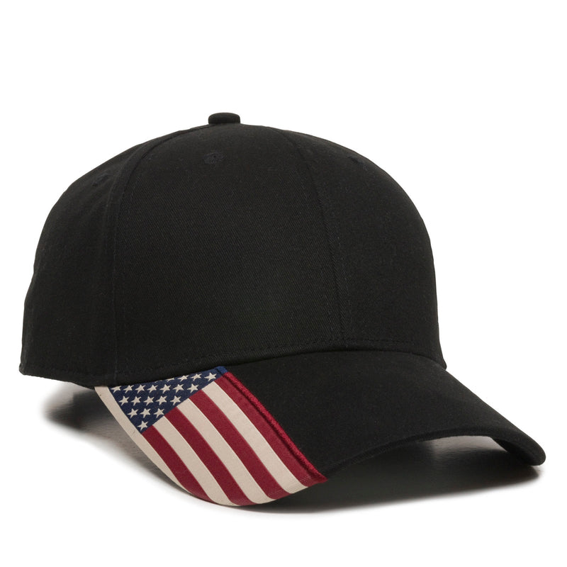 Outdoor Cap USA-300 Brushed Twill w/ Flag Visor Insert (Black)