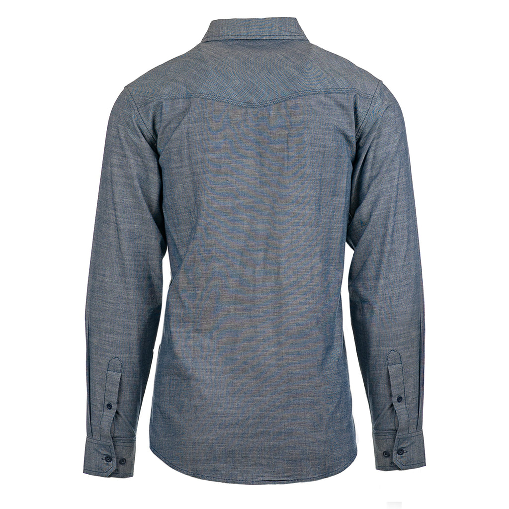 4 oz. 80/20 cotton/polyester chambray shirt2 chest pockets with button flapsInverted back pleatButton cuffsModern fitSizes: S-3XL