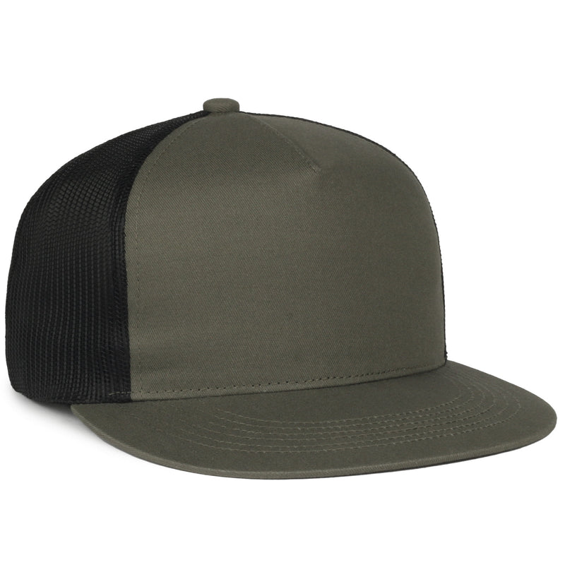 This crown is as high as they come. This structured cotton twill cap features a large rounded flat bill. It also comes in many classic colors with the trend forward shape and look.